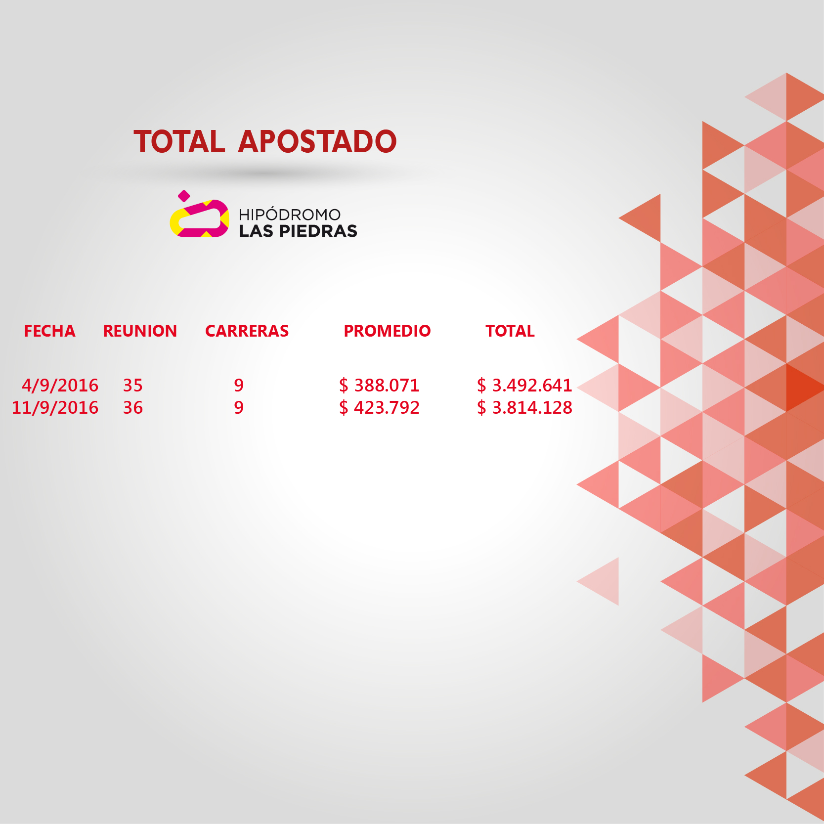 Oficina de Apuestas Informa: Total Apostado Setiembre 2016
